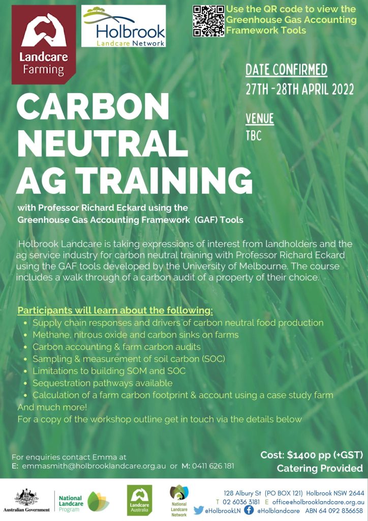 You are here: 27th April Carbon Neutral Ag Training Day 1 10:30am – 5:30pm HLN is currently taking expressions of interest for Carbon Neutral Training in April 2022. For more information including a workshop outline, get in touch with Emma at [email protected] or 0411 626 181 Share Share on twitter Share on facebook Share on pinterest Share […]