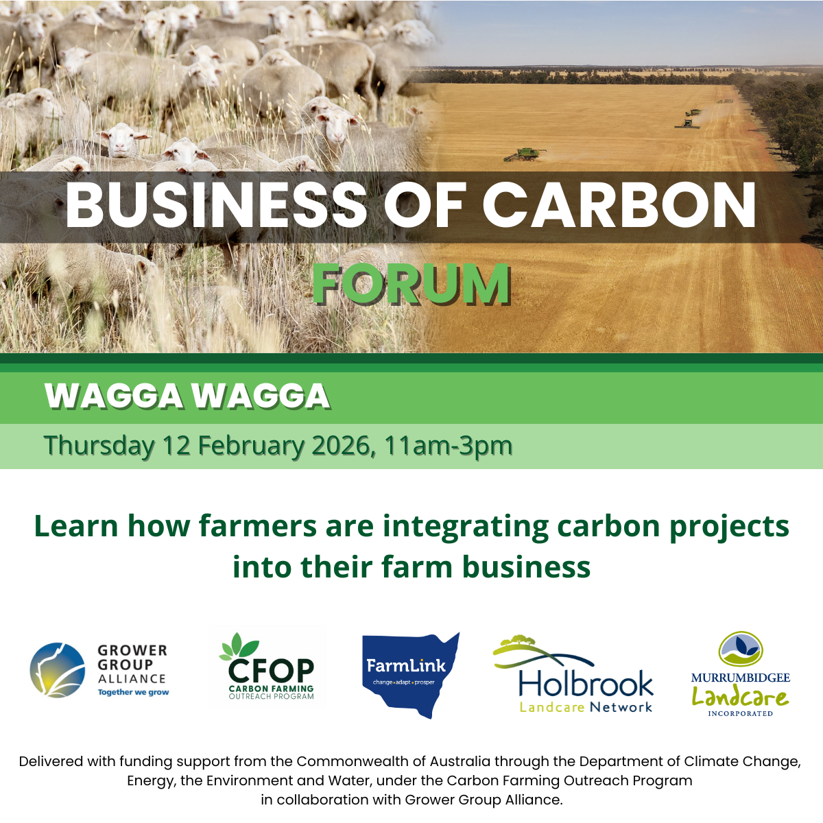 Delivered with funding support from the Commonwealth of Australia through the Department of Climate Change, Energy, the Environment and Water, under the Carbon Farming Outreach Program in collaboration with Grower Group Alliance.