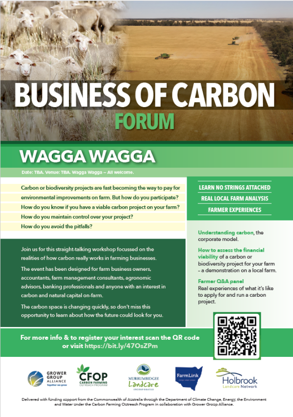 Holbrook Landcare Network has previously developed a useful Carbon Accounting Factsheet through our Holbrook Sustainability Benchmarking Pilot. This is a great resources to help you identify options and opportunities you can explore for your farming business.